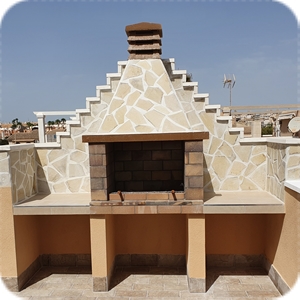 Construimos chimeneas de obra con revestimiento de piedra y barbacoas de obra para tu propio balcón, jardín o terraza.